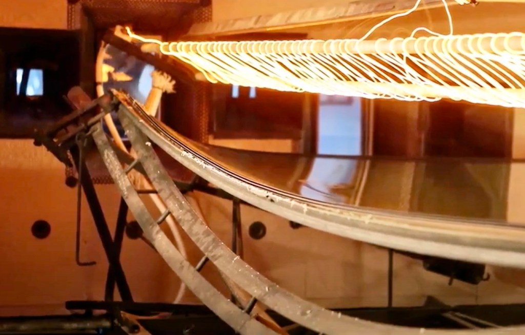 Pour faire un vitrage auto, l’industriel verrier achète du verre plat. Il le découpe d’abord dans sa forme 2D (« développée » s’il s’agit de vitrage bombé), puis en façonne les bords. Il le chauffe dans un four pour le rendre malléable, et lui donner sa forme définitive, grâce à un outillage spécifique au modèle. Le vitrage subit ensuite soit un assemblage pour le feuilleté, soit une trempe thermique pour le trempé. Le vitrage n’est donc pas « coulé » ou « moulé », et c’est bien cette utilisation de verre parfaitement plat, semblable à celui utilisé dans le bâtiment, qui garantit sa planéité et ses qualités optiques. Dans ce processus de fabrication, c’est l’étape du formage (bombage) qui est la plus critique en termes de coût, de temps de cycle, de rendement et de tolérances. C’est ce qui explique que le coût final d’un vitrage peut être très variable selon la complexité de sa forme.